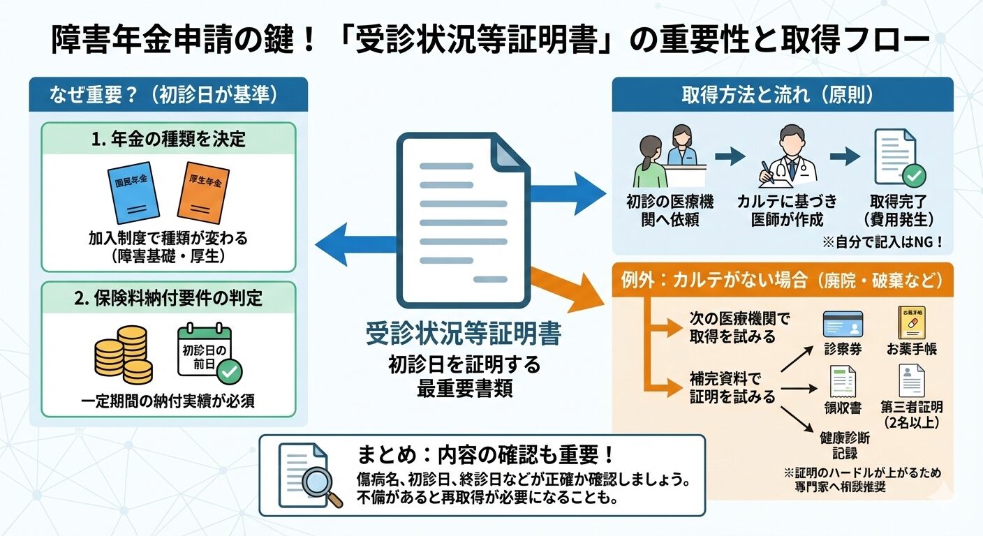 - 受診状況等証明書は初診日を証明する最も確実な書類